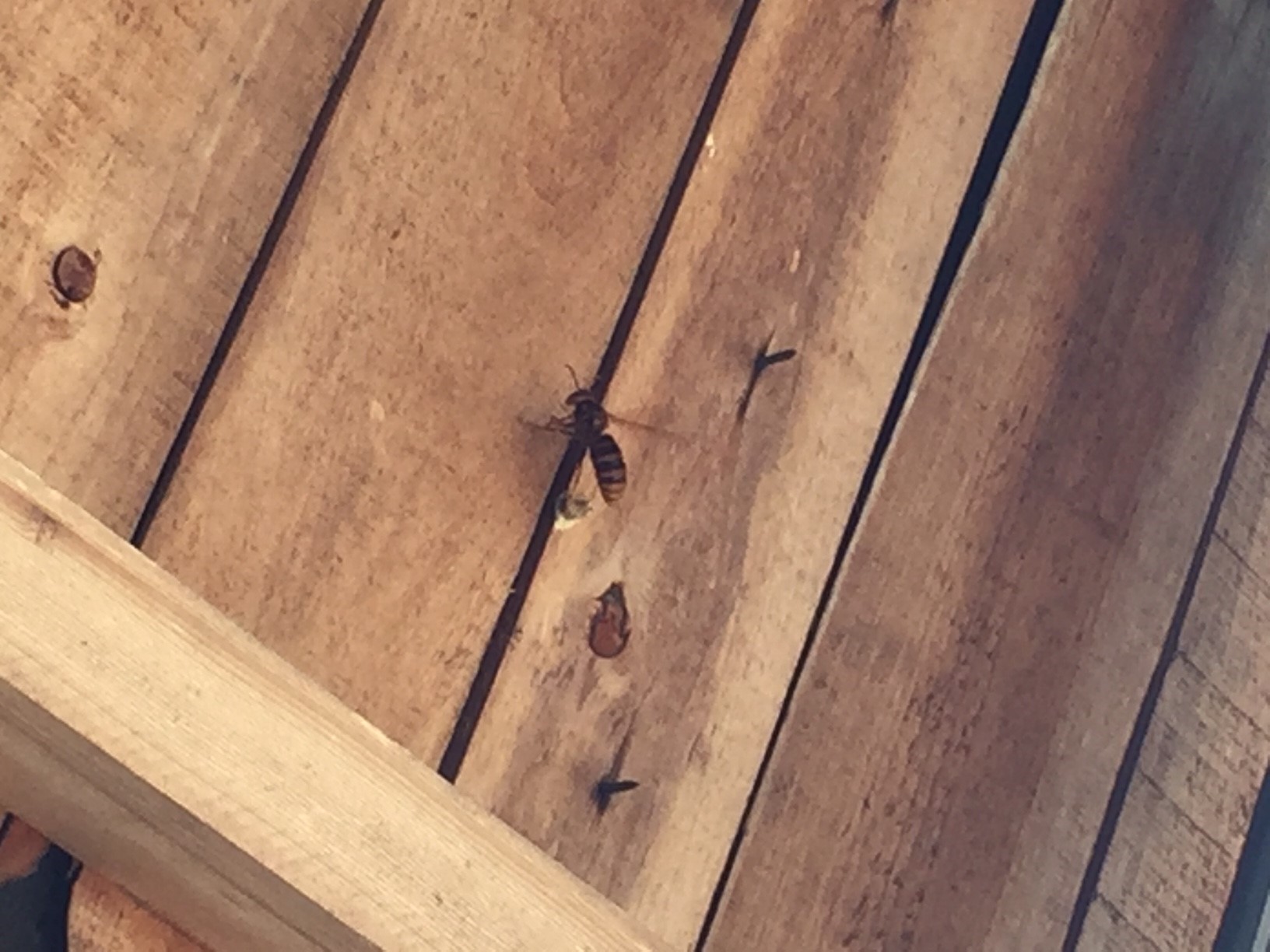 取った後に ハチが帰ってきて、巣があった所を ウロウロ、、、。