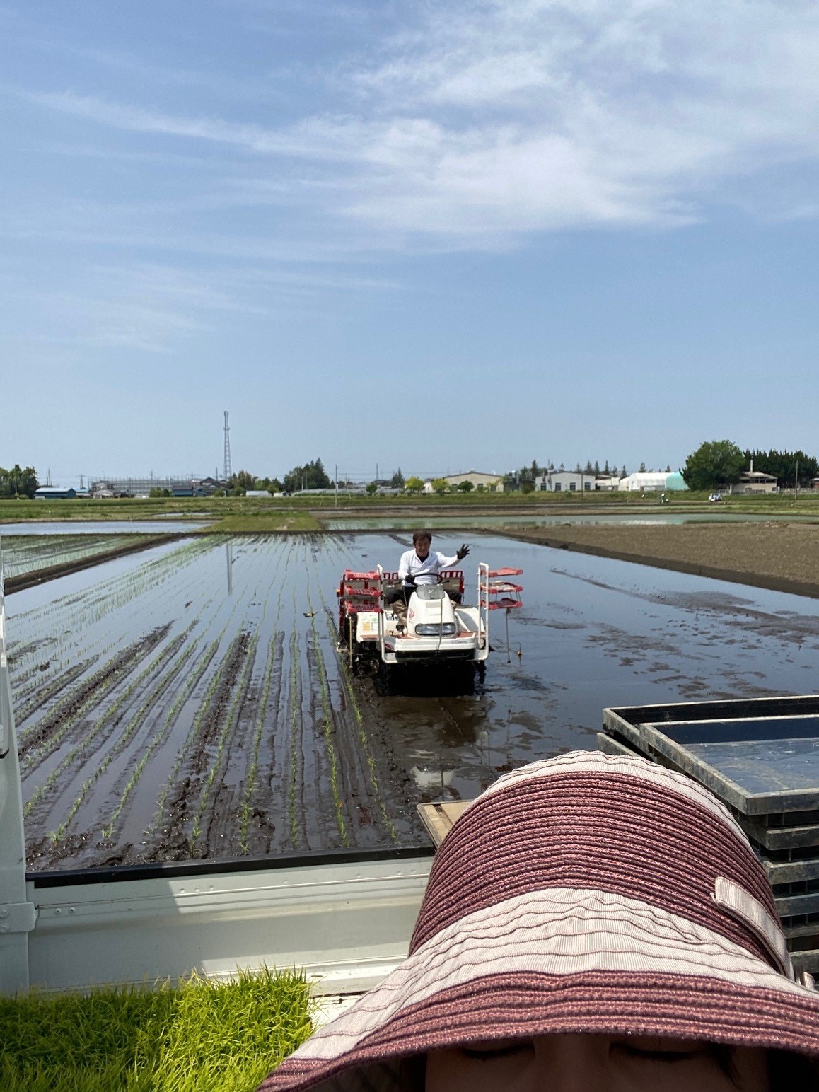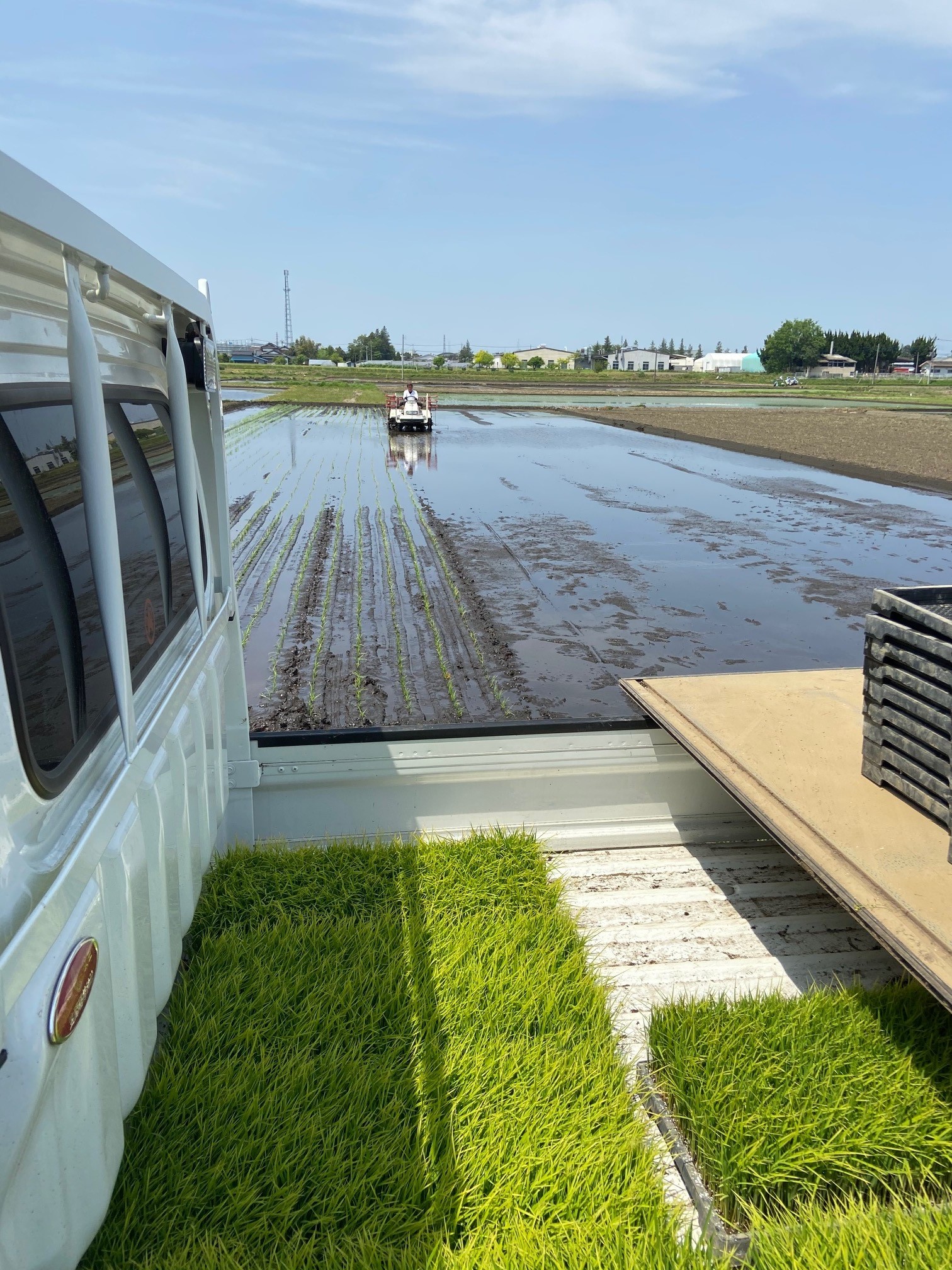 社長のハイカラな愛車、軽トラも この日は田植え仕様にドレスアップです。